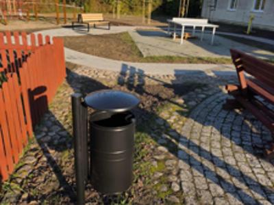- zamontowano małą architekturę: 2 ławki, 2 kosze na śmieci, 1 stojak na rowery,
