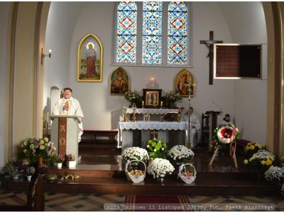 Mszę Świętą celebrował ks. Mariusz Koronowski Wicedziekan Dekanatu Trzemeszno, wygłaszając homilię, która przypomniała, że wolność wymaga odpowiedzialności, a Ojczyzna – troski od każdego Polaka.